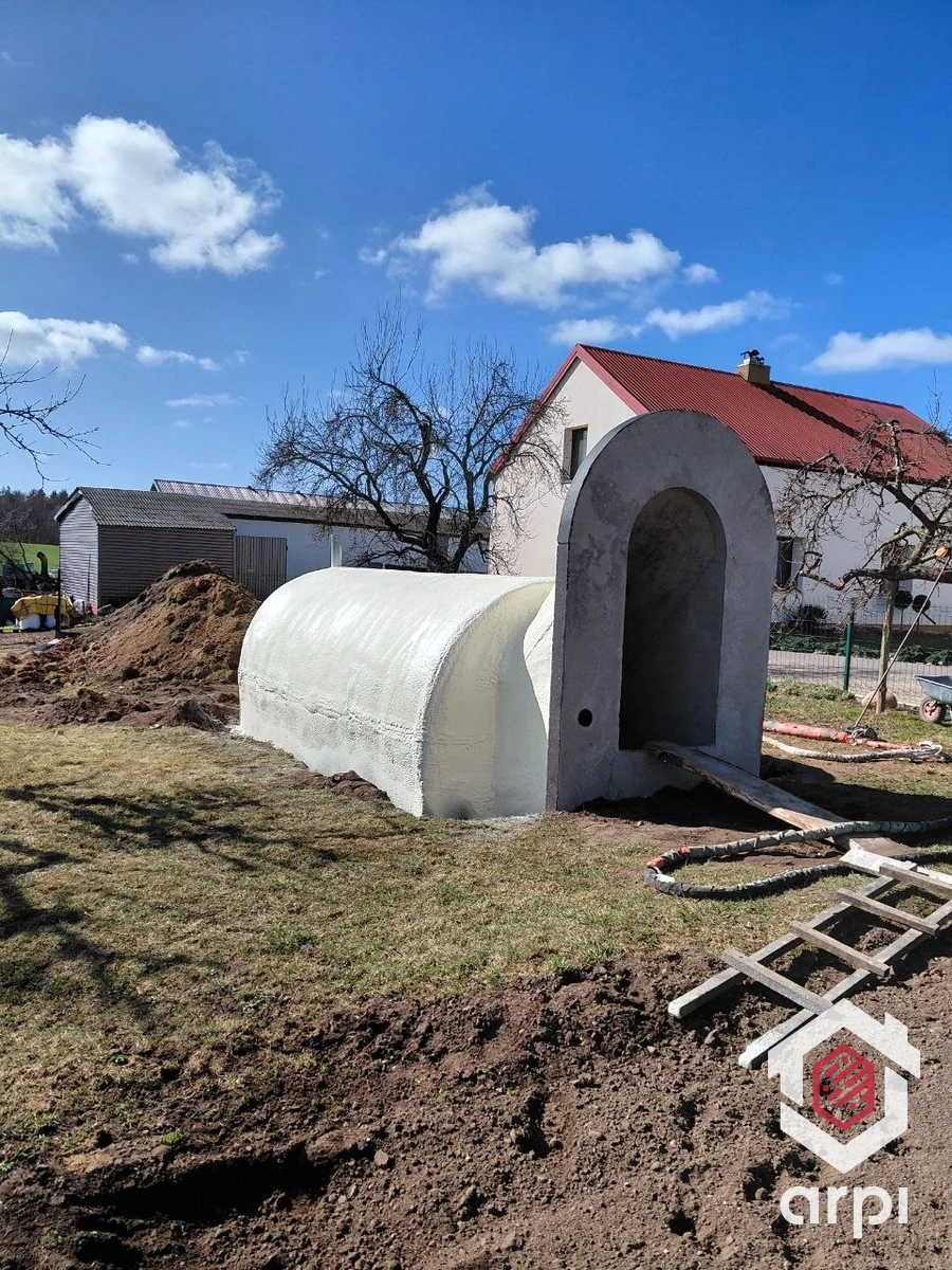 Zrealizowaliśmy usługę natrysku piany zamkniętokomórkowej Ultrapur RG 03/35 o grubości 4 cm na piwniczce ogrodowej w Bytowie. To ciekawy i funkcjonalny obiekt, który doskonale sprawdza się jako naturalna spiżarnia do przechowywania żywności, przetworów, win czy warzyw przez cały rok. Dzięki stabilnej temperaturze i odpowiedniej wilgotności piwniczka zapewnia idealne warunki magazynowania bez potrzeby użycia energii elektrycznej.
